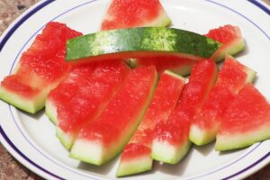 スイカの皮は、果肉を食べた後に残る白い部分。一般的には赤い果肉を食べたら、皮はそのまま捨てると思います。また、皮へ近づくにつれ固くなり、味もしなくなるため、主に子どもからは不人気となっていることでしょう。しかし、シャキシャキとした食感と淡白な味わいが特徴の皮は、栄養価が高く、特に血流改善に役立つシトルリンという成分が果肉の約2倍も含まれています。はい、捨てるのはもったいない食材と言えます。今回紹介している漬物・浅漬けだけでなく、炒め物(きんんぴら・中華風炒め)や煮物(トマト煮込み・佃煮)など、さまざまな料理に活用できるんです。フルーツのカテゴリーで言えば、バナナやリンゴといっしょにはちみつも入れてミキサーにかければ、栄養の高いスムージーとしても楽しめますよ。